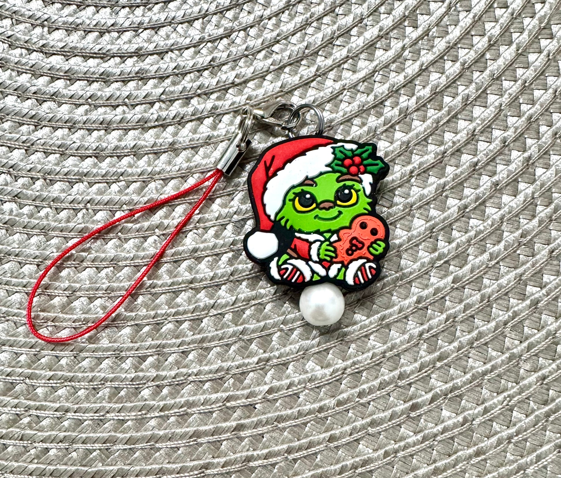 Baby Grinch cell phone charm lanyard with lobster claw clasp.
