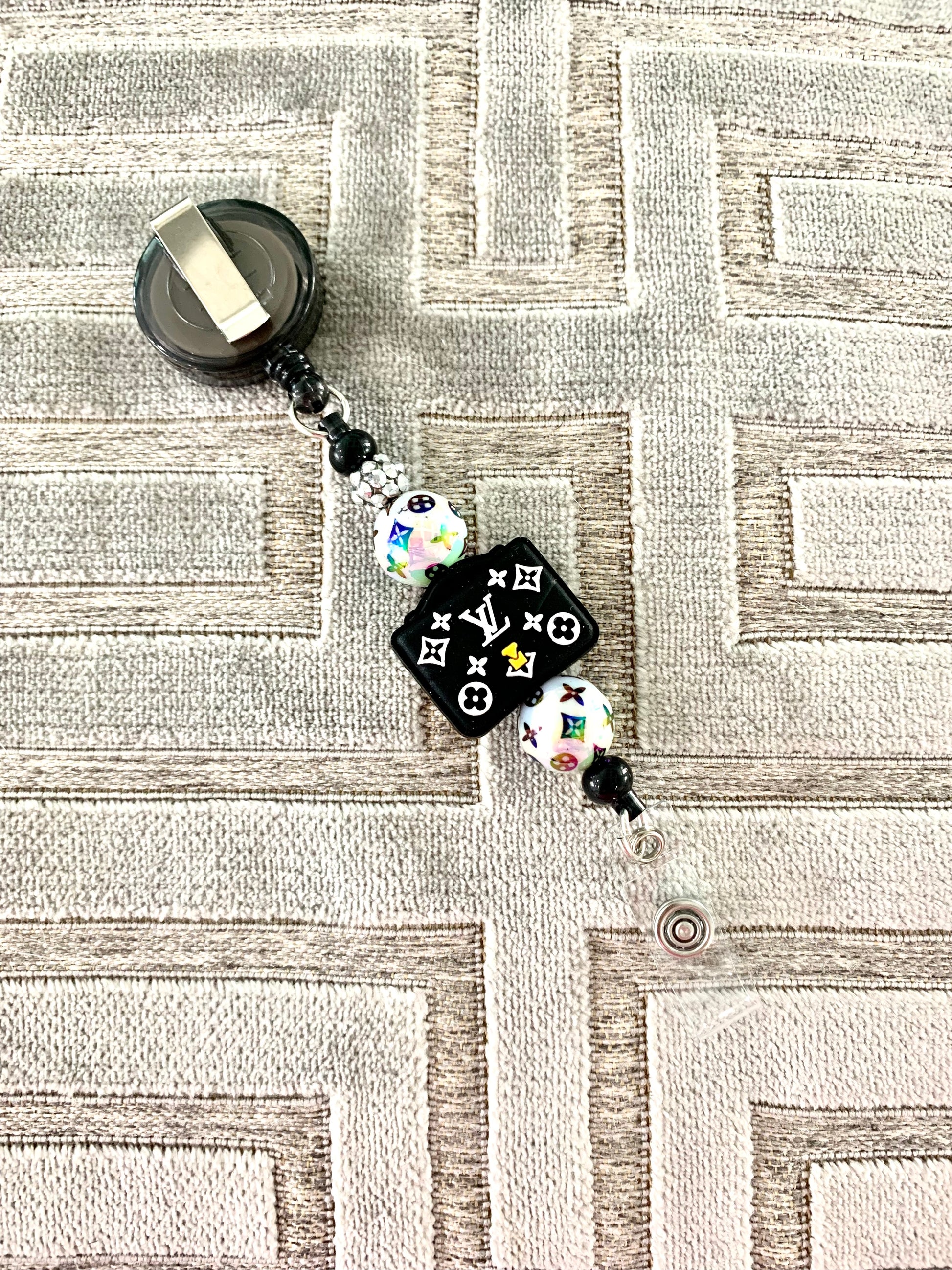 Handmade lanyard retractable badge reel with slide belt clip on back.